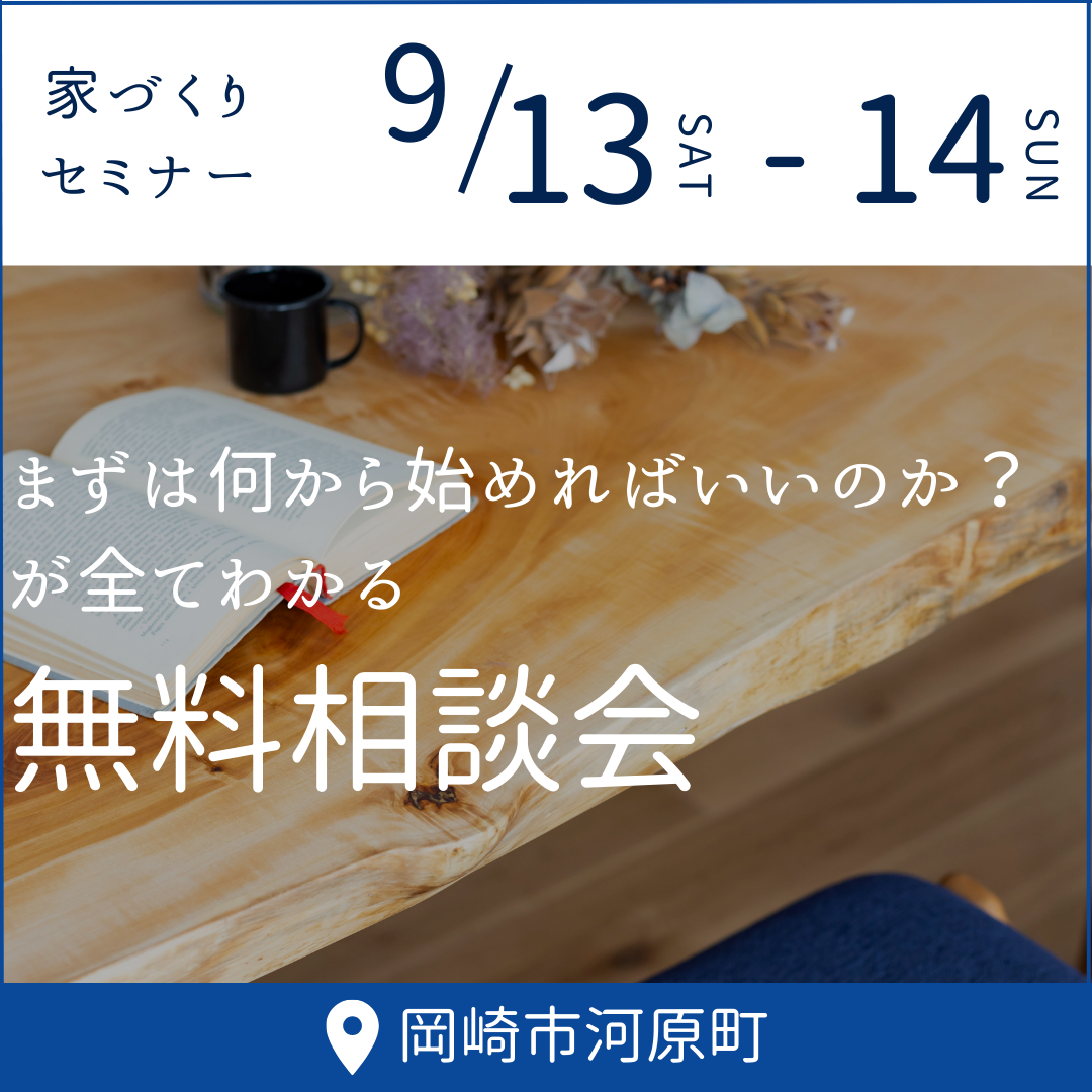 『何から始めればいいのか』がすべてわかる個別相談会 ~土地探し・間取り相談・資金計画なんでも無料~ 開催日 9月13日 (土)・9月 14日 (日) 時間 【ご予約制となります】 ①10:00-12:00 ②13:00- […]