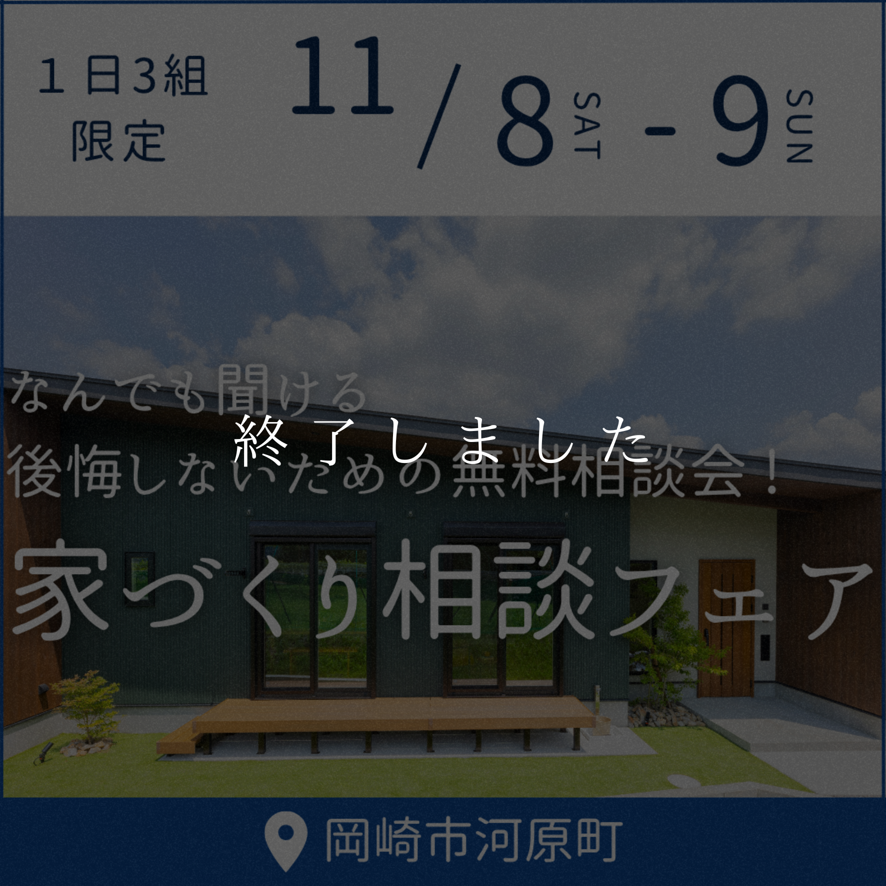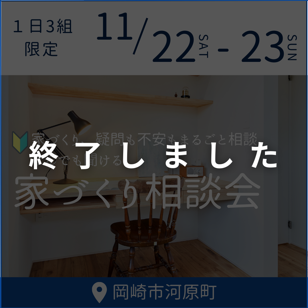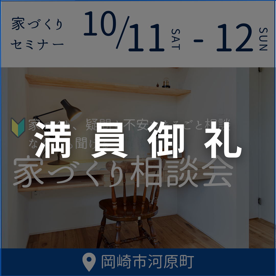 『家づくりの疑問・不安』なんでも聞ける後悔しないための家づくり相談フェア ~土地探し・間取り相談・資金計画~ 開催日 11月8日 (土)・11月 9日 (日) 時間 【ご予約制となります】 ① 10:00-11:30 ② […]