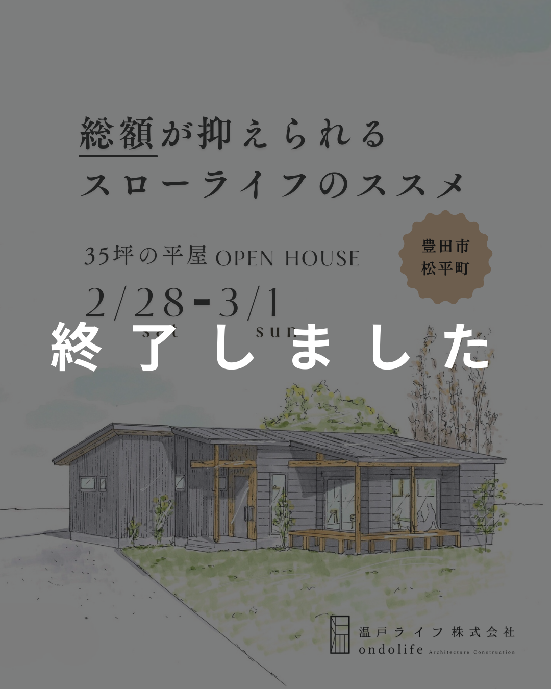 『後悔しないための』やさしい家造り勉強会 開催日 2月1日 (日) ~ 2月28日 (土) 時間 (ご予約制) ①10:00-11:30 ②13:00-14:30③15:30-17:00 会場 ondolife […]