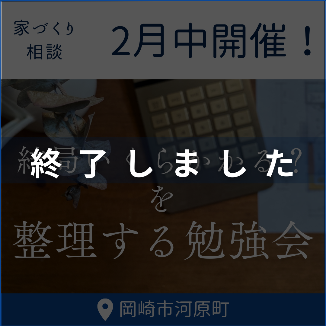 4月1日(水) ~ 30日(木) ①10:00-11:30 ②13:00-14:30 ③15:30-17:00 ondolife(岡崎市河原町16-12) 家を建てたい!と思ったけれど… 『何から始めれば、どう調べれば・ […]