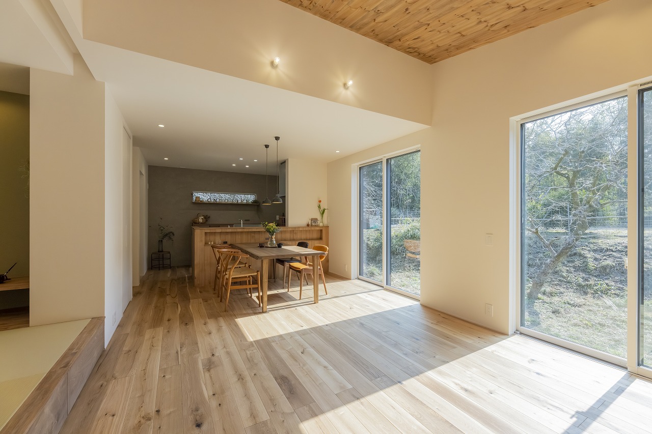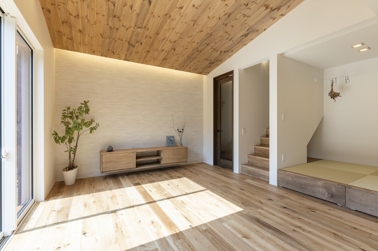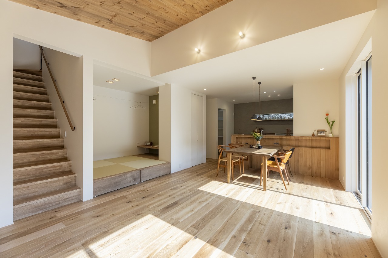 ワンフロアで暮らしが整う、素材に癒される半平屋の住まい。